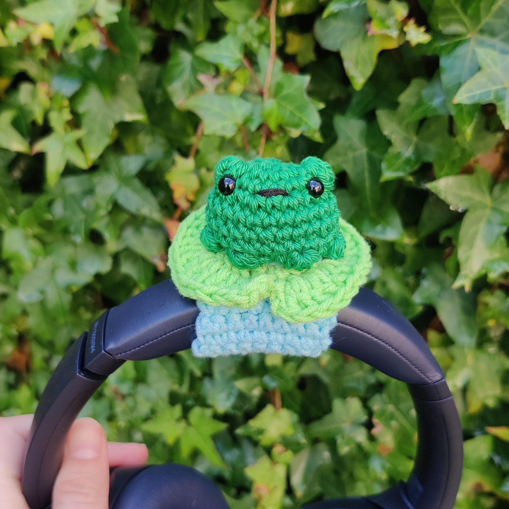 Crochet Headset Frog on Lilipad Cover