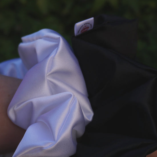 XXL Oversized Black Pearl Satin Hair Scrunchie