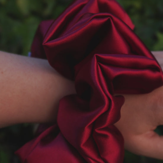 XXL Oversized Crimson Red Satin Hair Scrunchie